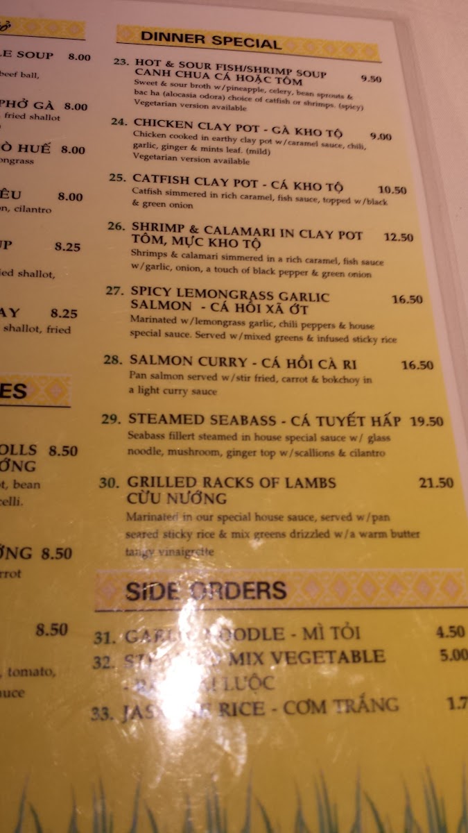 The menu offers a range of traditional Vietnamese dishes organized into several key categories to suit various dining preferences. For starters, the appetizer section includes a selection of rolls such as BBQ pork salad rolls, imperial rolls, and crunchy rolls, incorporating classic ingredients like rice paper, pork, shrimp, and fresh herbs, typically served with fish sauce.