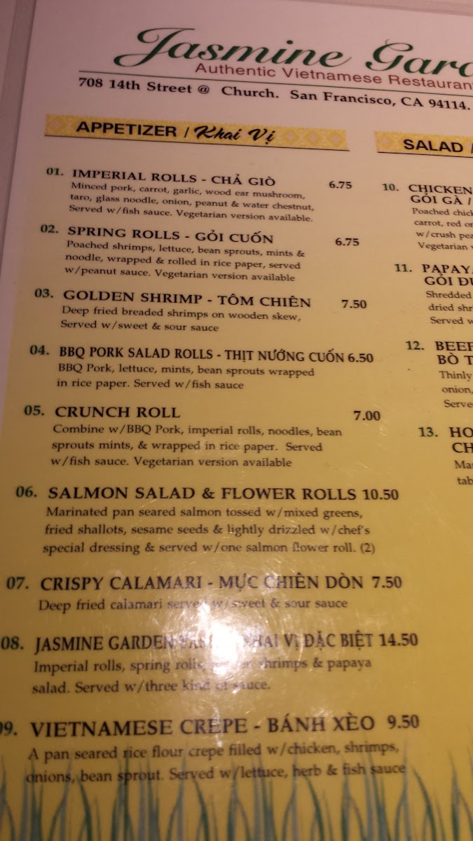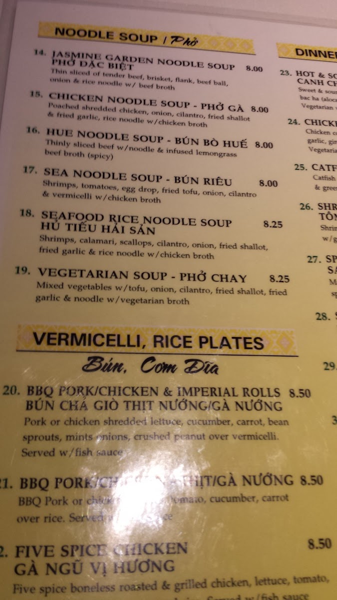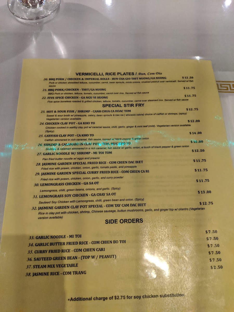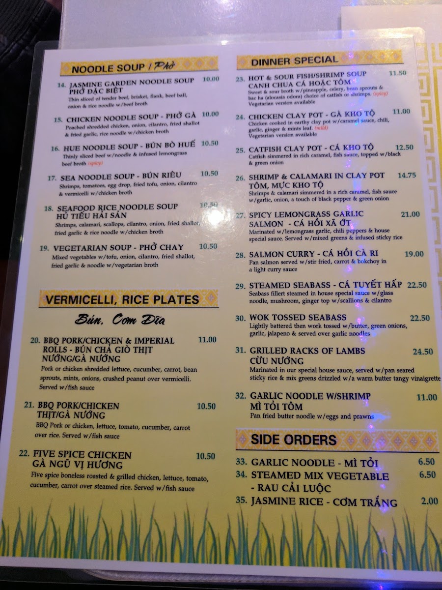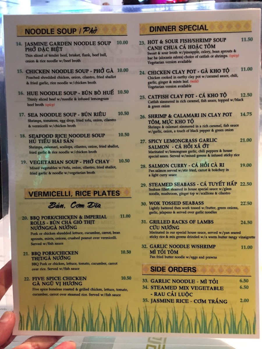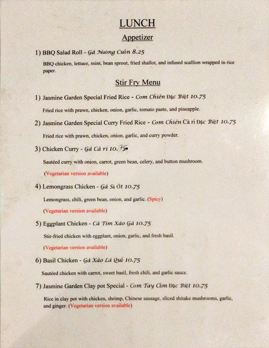 Jasmine Garden Menu